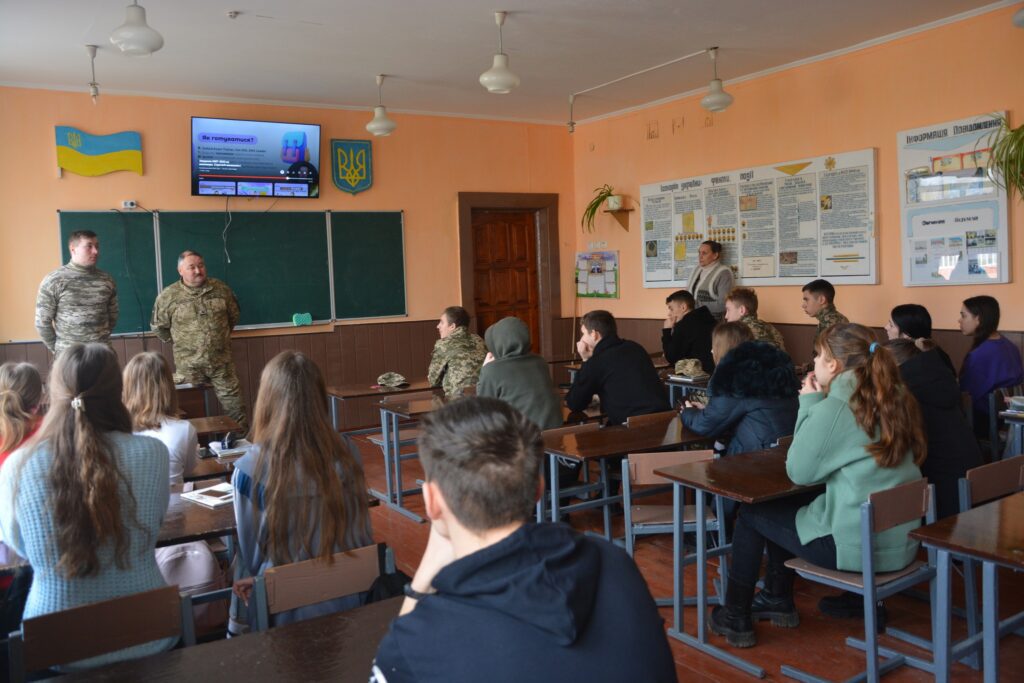 Одинадцятикласники уважно слухали цікаву розповідь нашого захисника, цікавились тим, як живеться воїнам на передовій.