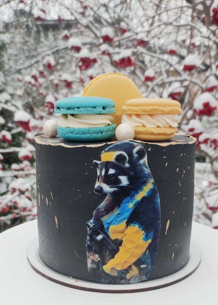 Не просто врятувати бандероєнот, а ще й посмакувати солоденьким запропонувала рівнянам Юлія Хажанець. Вона кондитер, який виготовляє на замовлення смачні та неймовірно гарні торти та тістечка. Історія єнота, якого викрали рашисти, зворушила всіх українців. Юлія створила торт з патріотичним декором і виставила його на аукціон із закликом врятувати бандероєнота. Виручені кошти підуть на кабельне обладнання створення нової мобільної апаратної зв’язку для наших котиків. Почитавши опис торта, його відразу хочеться скуштувати.