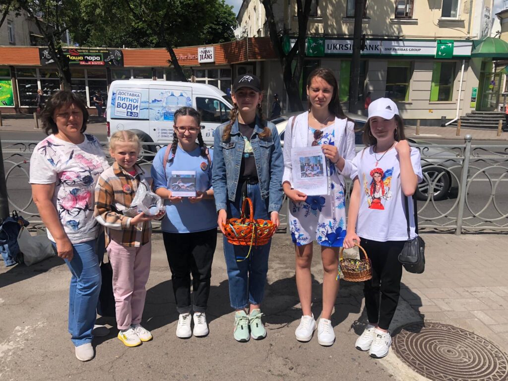 Патріотичні браслетики та брелочки зі стрічок продавали вчора у Рівному гуртківці Оженинського учнівського лісництва «Вікова діброва» ДП «Дубенський лісгосп» НВК «Оженинська ЗОШ І-ІІІст.(ліцей)-ДНЗ» ім. Т.Г. Шевченка.