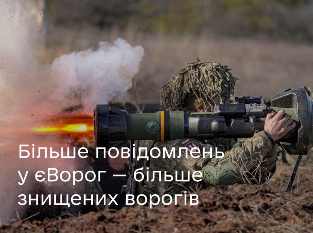 Наша команда неймовірно вдячна кожному з вас, хто щодня повідомляє в чатбот єВорог про місцерозташування окупантів. 24/7 ми оперативно опрацьовуємо всю вашу інформацію, відстежуємо переміщення ворога, і українські військові максимально точно завдають їм нищівного удару.