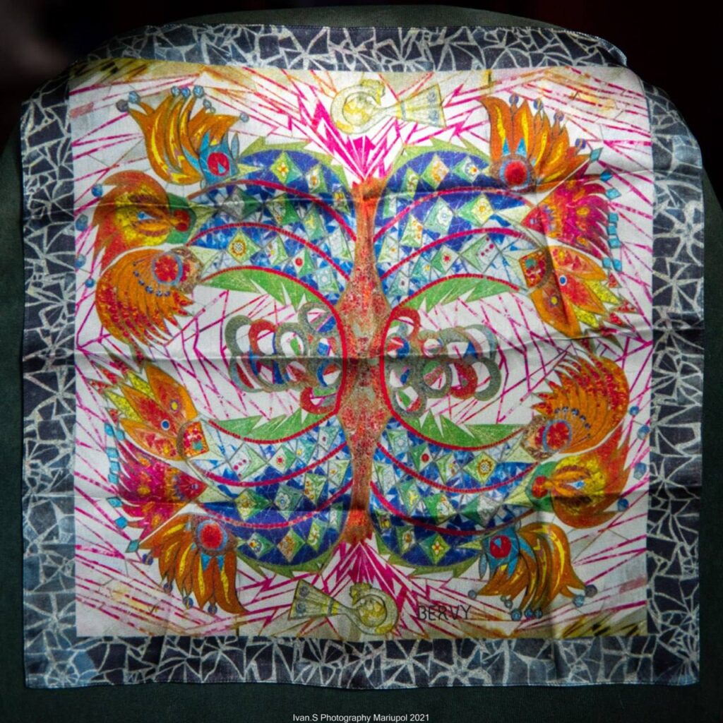 Мозаїки “Боривітер” та “Дерево життя”, які створила команда Алли Горської у маріупольському ресторані “Україна”, бренд зображує на хустках та шалях – оберегах для жінок. Для створення дизайну аксесуарів було використано фото маріупольського фотографа Івана Станіславського.