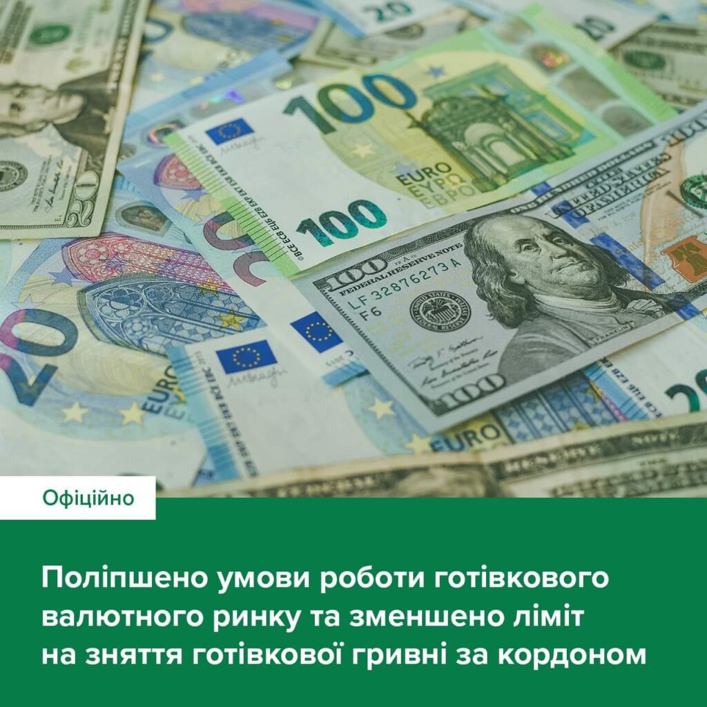 Національний банк поліпшив умови роботи готівкового валютного ринку та зменшив ліміт на зняття готівкової гривні за кордоном.