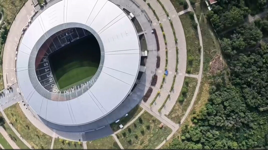 В інтернеті з’явилося відео, зняте українським дроном, який безперешкодно пролетів над донецьким стадіоном «Донбас Арена». Тож українці можуть побачити, як нині вигляд має клубна арена «Шахтаря».