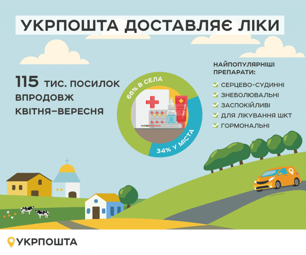 «За неповні 6 місяців маємо 115 тис. посилок із ліками, доставлених Укрпоштою. Щоденна кількість замовлень за цей період зросла більше ніж удвічі. Загалом 34% посилок із ліками ми доставили у міста, а 66% – в села та райцентри. Для більшості із віддалених населених пунктів Укрпошта – єдина можливість отримати ліки та ще й за вигідними цінами, які пропонують наші партнерські аптечні мережі. Національний поштовий оператор має майже 11 тис. відділень, які покривають усю території країни, а отже, із запуском послуги – 100% населення отримали можливість придбати ліки за вигідними цінами із доставкою додому. У квітні ми запустили послугу з одним партнером – онлайн-сервісом, а зараз Укрпошта вже співпрацює з 50 аптечними мережами та сервісами, зокрема із найбільшими – Liki24.com, «Аптека 911», ТОВ «Фармастор», ТОВ «Фарма Хауз», ТОВ «АПТЕКА24», ТОВ «Аптека низьких цін» та інші. Тому кожен користувач послуги має доступ до широкого асортименту ліків, вигідних цін, і звичайно може отримати доставку замовлень безпосередньо додому»,