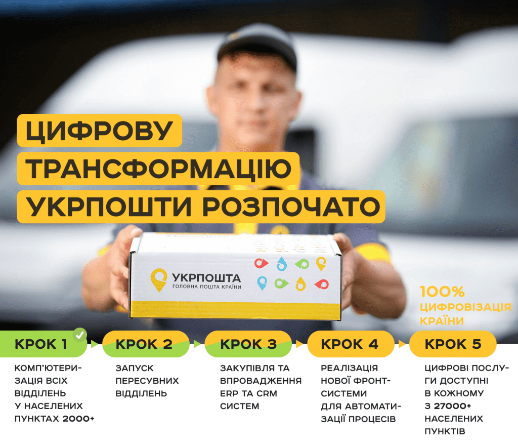Одним із перших кроків у рамках співпраці стала можливість клієнта Укрпошти одержати відправлення за електронними документами в мобільному застосунку Дія.«Одним із пріоритетних напрямів роботи для Укрпошти є цифровізація поштової сфери. Після десятків років «технологічного застою» нам вдалося розпочати історичні зміни. Для порівняння: у 2016 році з понад 11 тисяч відділень лише 20% мали комп’ютер, а станом на сьогодні ми вже комп’ютеризували всі поштові відділення у населених пунктах, де проживає більше 2000 людей. Решту обслуговуватимуть сучасні поштові авто, оснащені всім необхідним. Перші 630 таких пересувних відділень уже працюють в 7 областях, в наступному році їх буде біля 2500 на всю країну. Окрім техніки і авто, ми міняємо і софт. Наразі проводимо закупівлю нової ERP-системи для налагодження внутрішніх процесів. На черзі – нова фронт-система для автоматизації всіх процесів у відділеннях та роботи операторів, щоб підвищити якість послуг та скоротити час операцій. Третім етапом стане впровадження CRM-системи. І це означає не лише повний перехід Укрпошти на сучасні послуги, але і цифровізацію зокрема і найвіддаленіших куточків України, де поштові відділення — це єдина можливість скористатися логістичними, фінансовими чи торговельними послугами», — наголосив генеральний директор Укрпошти Ігор Смілянський.