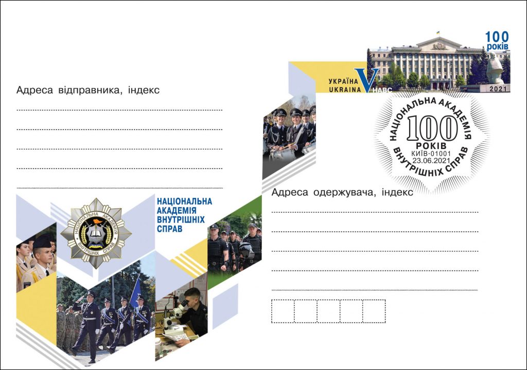 Укрпошта у співпраці з Національною академією внутрішніх справ ввела в обіг конверт з оригінальною маркою, присвячений 100-річчю навчального закладу.