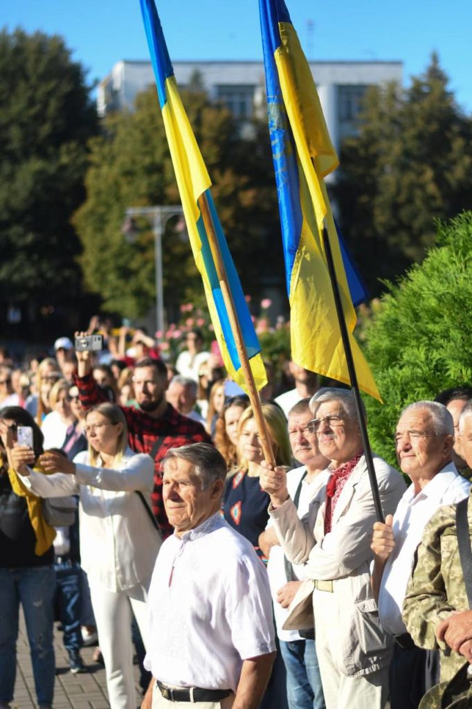 «Синьо-жовтий стяг – це вже всесвітньо визнаний символ боротьби, незламності та сталевої волі. З ним ми разом здобували незалежність, з ним наші воїни йдуть в бій. Ним ми накриваємо наших полеглих героїв. Я вірю, що наш прапор найближчим часом буде знову майоріти у тих містах, які сьогодні окуповані – в Донецьку та Луганську, в Севастополі та Сімферополі. Дякую всім, хто кожного дня на своєму місці наближає нашу перемогу», – звернувся до присутніх начальник Рівненської ОВА Олександр Коваль.