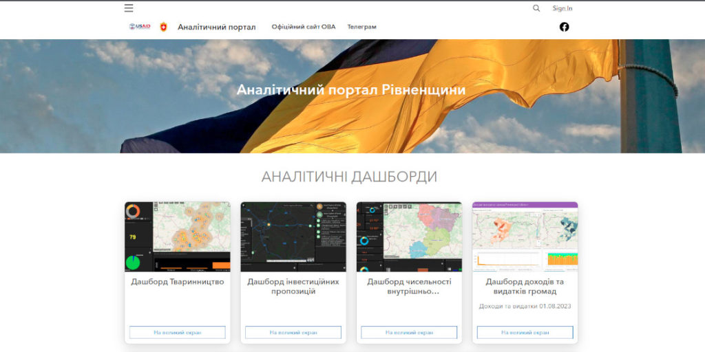Станом на зараз на геопорталі регіону можна знайти 5 дашбордів на такі теми: тваринництво, інвестиційні пропозиції, чисельність ВПО, доходи та видатки громад та дашборд ЦНАПів Рівненської області.