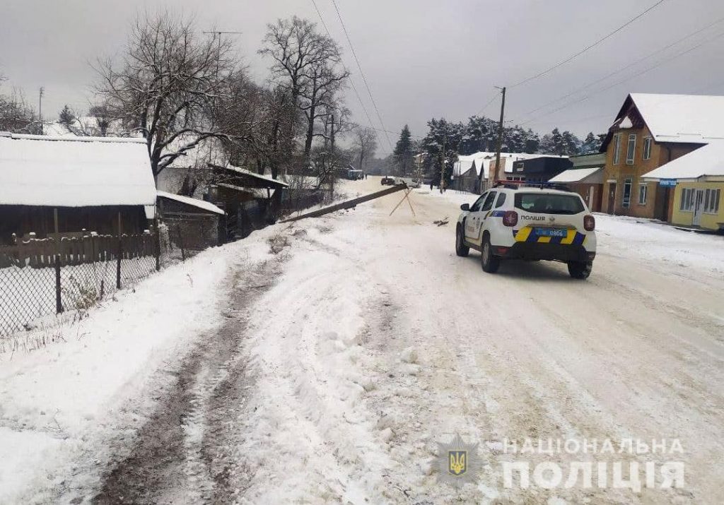 Вулиця населеного пункту без світла, а електроопора посеред дороги. Повідомлення про подію на спецлінію 102 надійшло від диспетчера РЕМ 10 січня о 9-тій ранку.