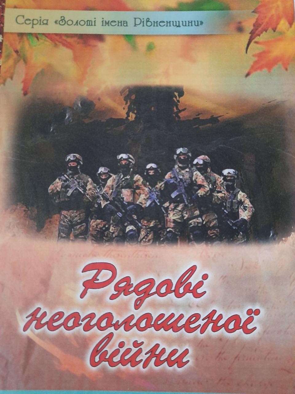 Книга вийшла в серії «Золоті імена Рівненщини». В ній зібрані нариси, есе, розповіді про учасників війни на сході – загиблих та живих, які були опубліковані у різних районних та обласних газетах Рівненщини.