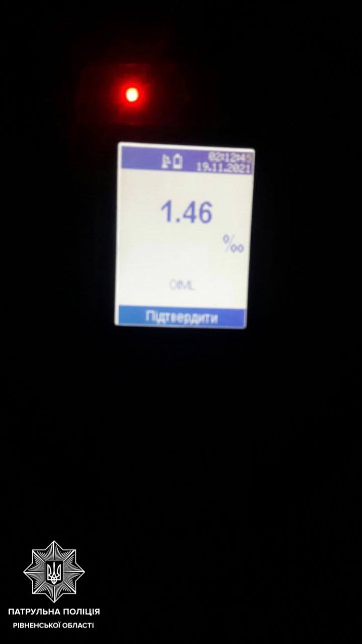 Під час встановлення обставин дорожньо-транспортної пригоди патрульні помітили у 27-річного водія ознаки алкогольного сп’яніння. Результат огляду — 1.46 проміле.