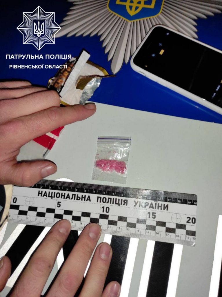 Другий інцидент стався сьогодні близько 13-ї години. На вулиці Костромській увагу ТоРівців привернув чоловік, що підозріло поводився та всіляко намагався уникнути зустрічі з поліцейськими. 33-річний рівнянин помітно нервував. Під час поверхневої перевірки патрульні виявили поліетиленовий пакет з речовиною білого кольору, зовні схожою на наркотичну.