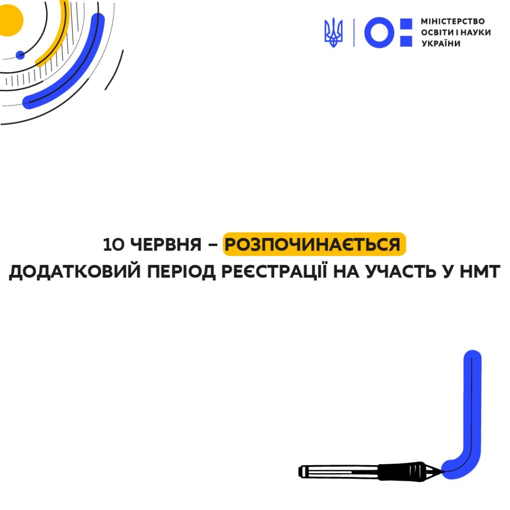 Вступники, які не встигли заповнити реєстраційну картку до 19 квітня, проте мають бажання проходити тестування, можуть зареєструватися і взяти участь у додатковій сесії НМТ. Додаткова реєстрація триватиме 10 днів та буде доступною на сайті УЦОЯО.