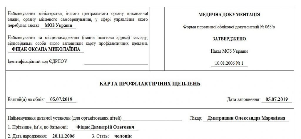 - За використання особою завідомо підроблених документів, які підтверджують проведення профілактичних щеплень проти особливо небезпечних інфекційних хвороб у вигляді штрафу від 17 до 34 тисяч гривень або обмеження волі на строк до двох років.