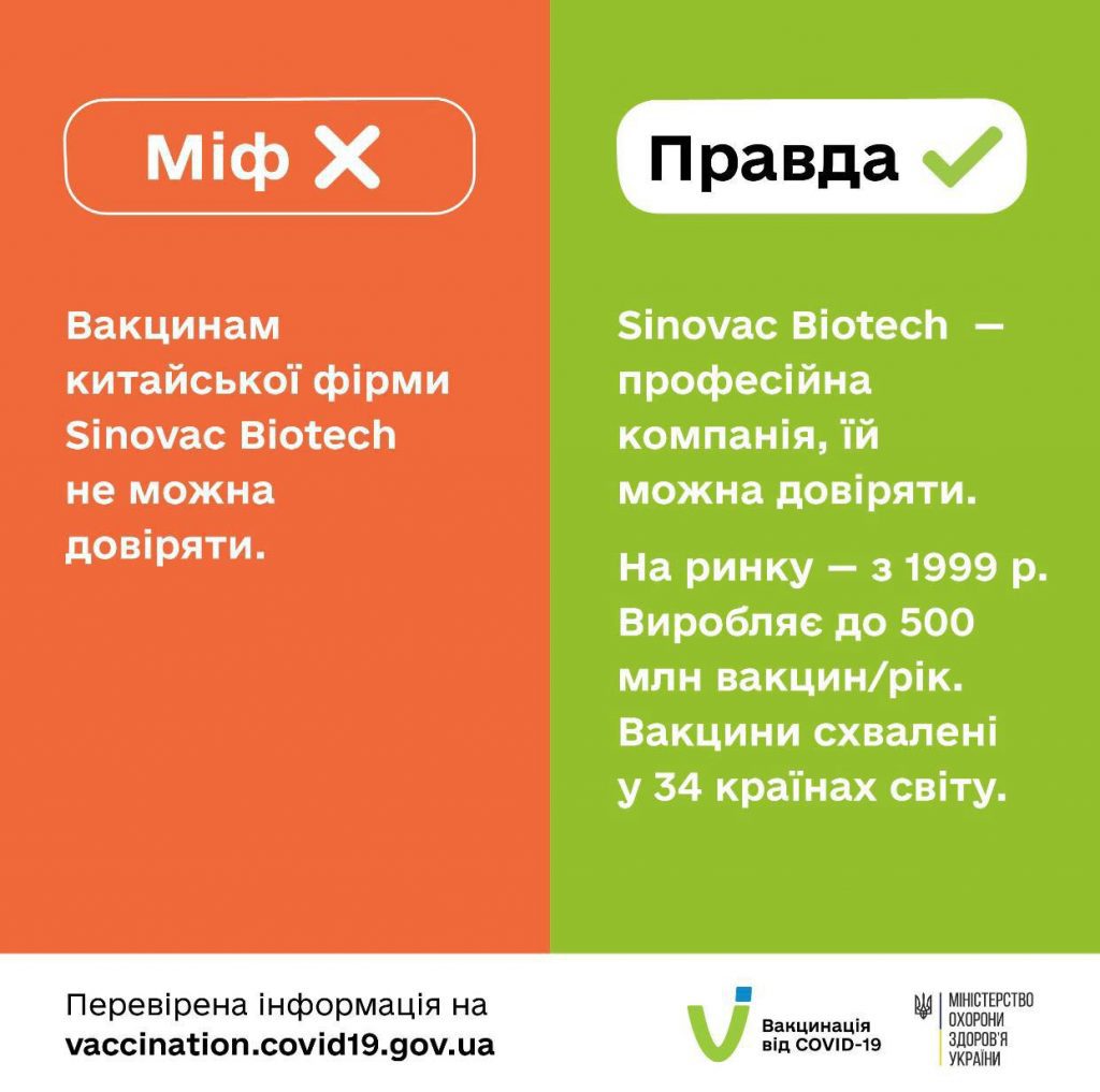 У межах вакцинації проти COVID-19, Україна використовуватиме вакцину CoronaVac фірми Sinovac Biotec.