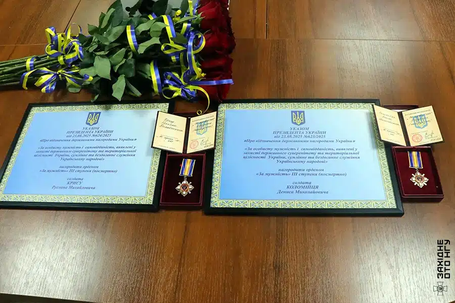 Як повідомили у військовій частині 3045 Національної гвардії України, відповідно до указів Президента України орденом «За мужність» III ступеня (посмертно) нагородили солдата Дениса Коломійця та солдата Руслана Крису.