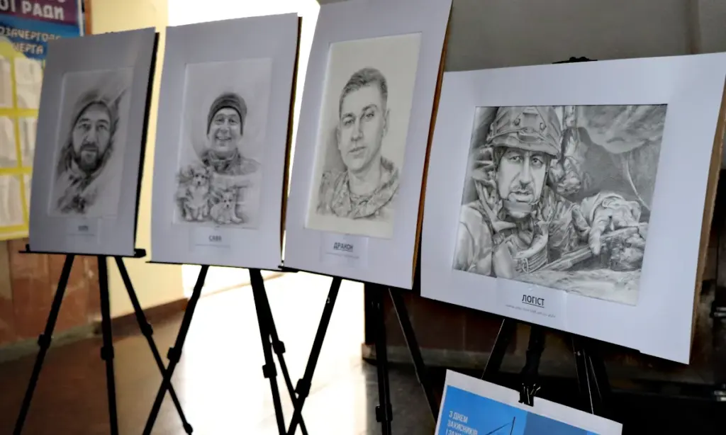 Експозиція представлена серією олівцевих портретів військовослужбовців Збройних Сил України. Авторка робіт – начальниця відділу архітектури та містобудування, головний архітектор виконкому Тамара Терехова.
