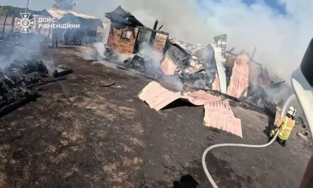6 вересня о 13:17 у селі Більська Воля Вараського району сталася пожежа в приватному господарстві на вулиці Залядинській.
