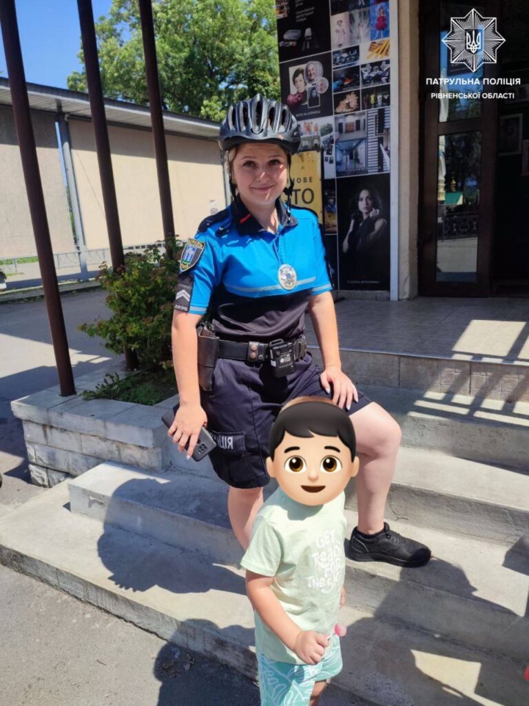 Учора, 24 липня, близько 14-ї години, на лінію 102 повідомили, що поблизу фотостудії, на вулиці 16-го липня, ходить маленька дитина без нагляду. Велопатрульні Рівного одразу приїхали на місце події та справді побачили малюка. Він був небагатослівним і просто усміхався поліцейським.