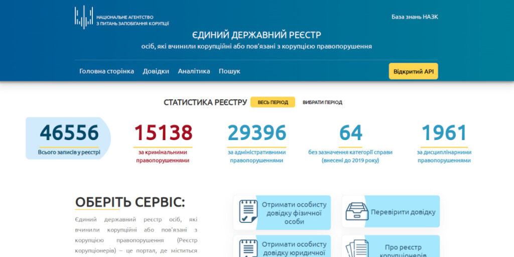 Переглянути Реєстр осіб, які вчинили корупційні та пов’язані з корупцією правопорушення можна за посиланням https://corruptinfo.nazk.gov.ua/