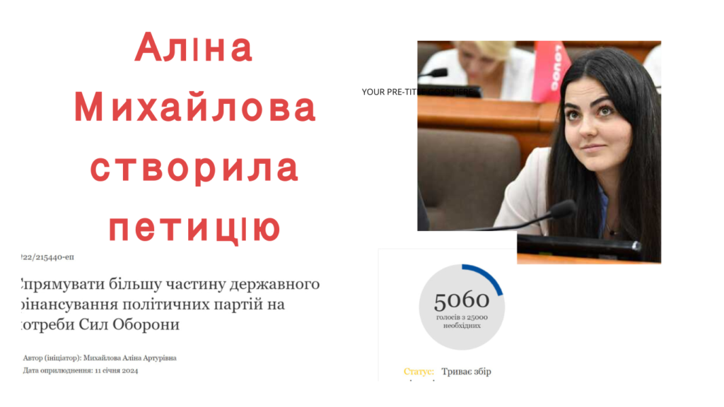 На сайті Президента зареєстрована електронна петиція від Аліни Михайлової. В ній вона закликає частину державного фінансування політичних партій спрямувати на потреби Сил Оборони.