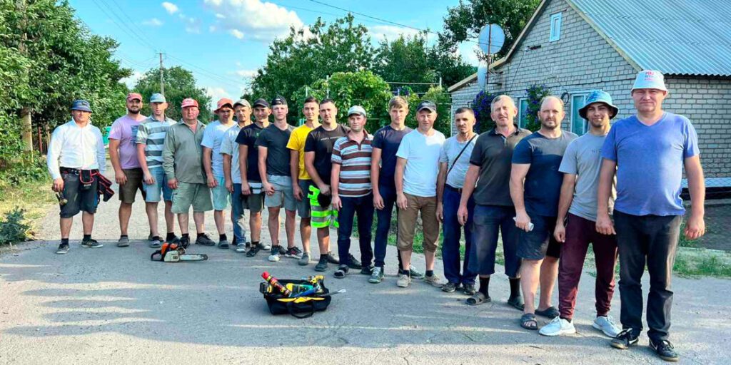 Очолює команду відбудовників староста села Могиляни — Віталій Тищенко.