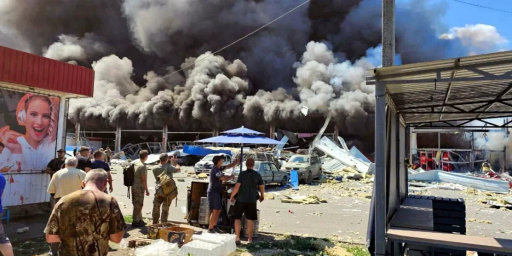 Костянтинівка, Донецька область. Удар російських терористів по звичайному супермаркету та пошті. Люди під завалами. Триває рятувальна операція.