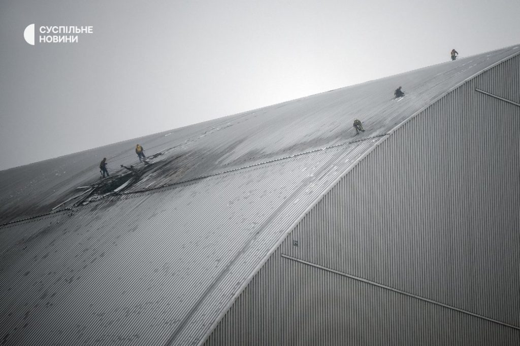 Під час перевірки нової небезпечної оболонки (НБО члени команди МАГАТЕ зафіксували, що велика площа була пошкоджена внаслідок удару дрона та подальшої пожежі. Команда підтвердила, що було порушено як зовнішнє, так і внутрішнє облицювання арки НБО. Утворився отвір діаметром приблизно шість метрів, а також пошкоджено деяке обладнання та електричні кабелі. Однак підтримуючі конструкції не мають серйозних пошкоджень.