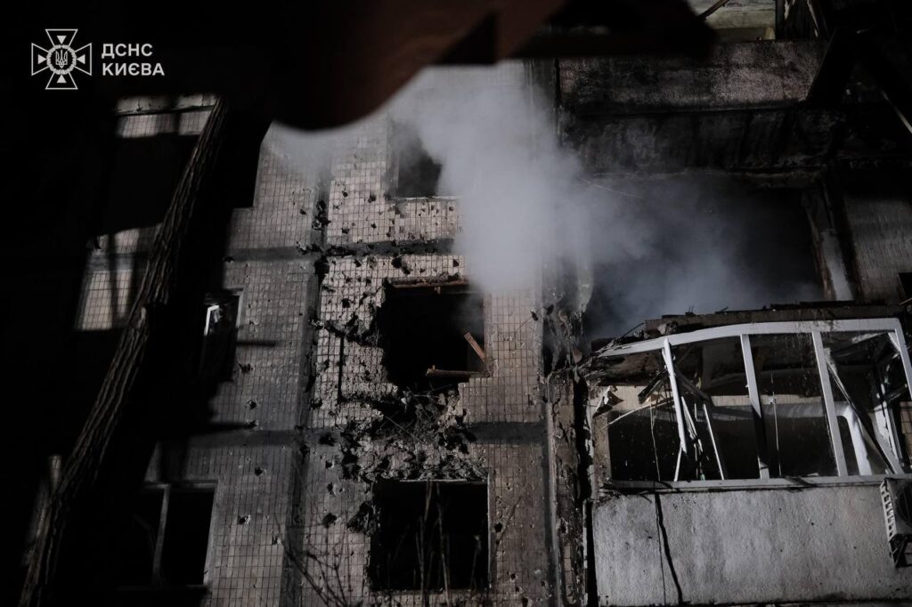 У Києві наслідки атаки виявилися значно драматичнішими. Як повідомив мер столиці Віталій Кличко, найбільших пошкоджень зазнав дев’ятиповерховий житловий будинок у Святошинському районі, де частково зруйновані з четвертого по восьмий поверхи. Там уже дістали тіла двох загиблих, ще одну людину рятувальники шукають. У тому ж районі уламки пошкодили ще кілька житлових будинків, серед них 16-поверхівка, де пожежа охопила верхні поверхи. Горять автомобілі біля СТО, складські приміщення.