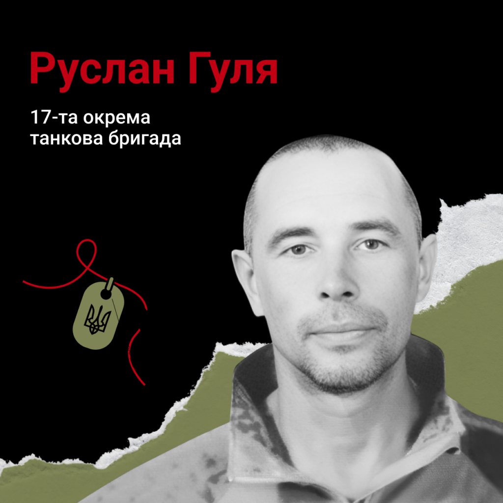 Руслан Гуля народився і жив у Кривому Розі на Дніпропетровщині. Працював водієм електровоза на місцевому підприємстві з видобутку руди. До лав ЗСУ вступив у лютому 2021-го – за рік після того, як контракт підписав його син Данило. Чоловік воював на Луганщині в 17-тій Окремій танковій бригаді.