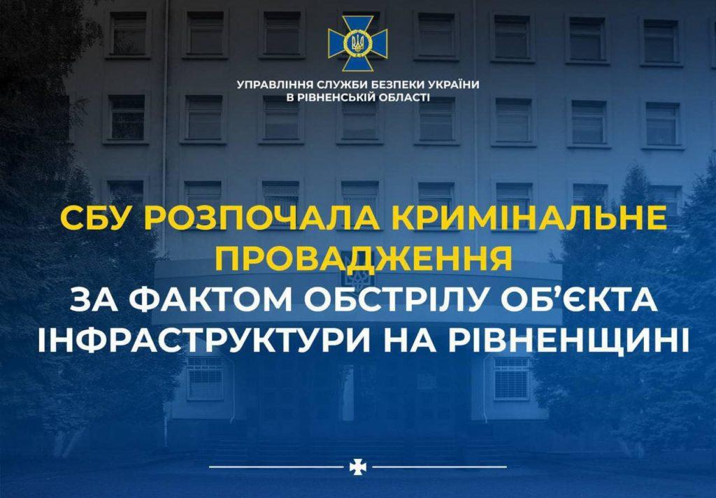 СБУ розпочала кримінальне провадження за фактом ворожого обстрілу об’єкта інфраструктури на Рівненщині