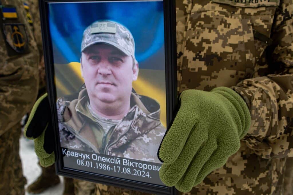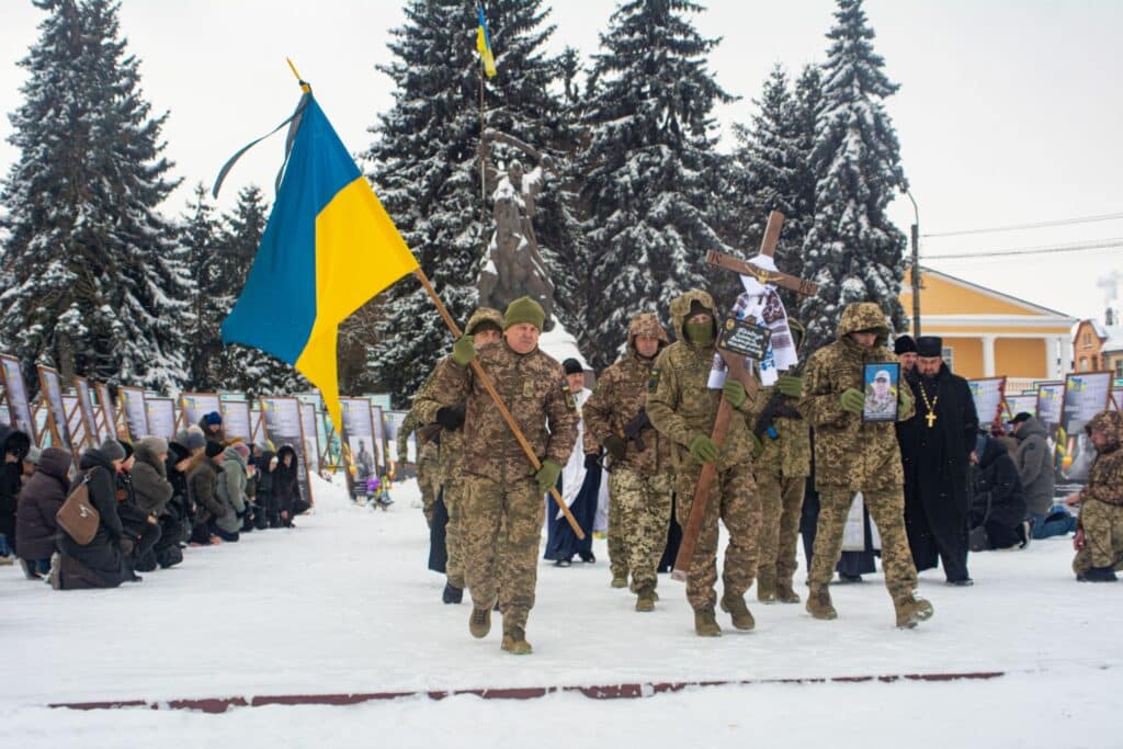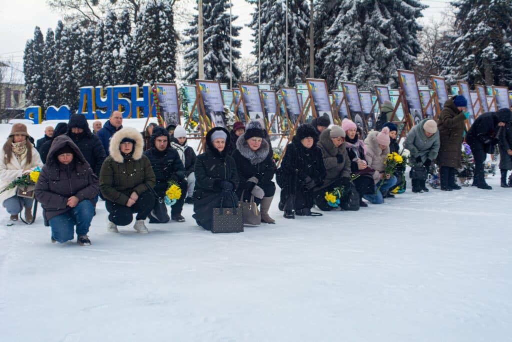 Скорботний майдан знову зібрався у Дубні – громада прощалася з полеглим захисником України, лейтенантом Олексієм Кравчуком. Містяни стали навколішки, щоб віддати шану воїну, який став для громади своїм, попри вимушене переселення з півдня країни.