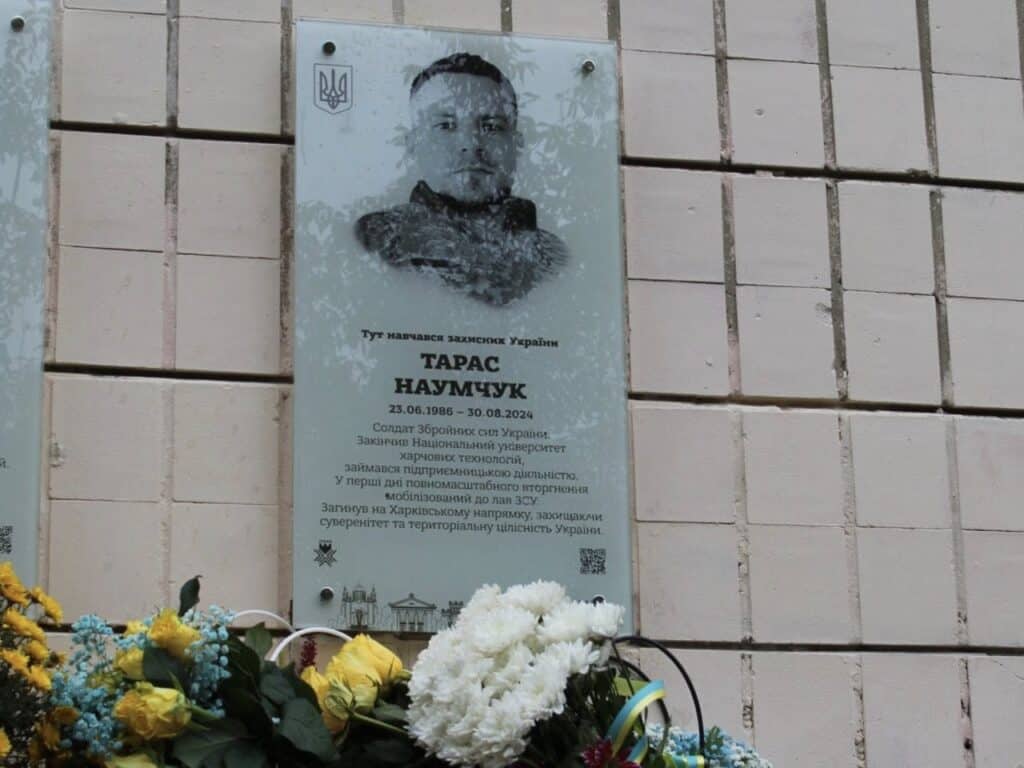 Сьогодні на фасаді Рівненського ліцею №13 урочисто відкрили меморіальну дошку на честь полеглого захисника України – Тараса Наумчука.