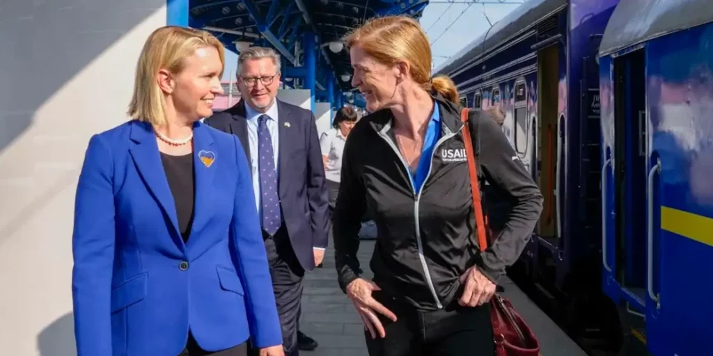 Фото: Посолка США в Україні Бріджит Брінк та адміністраторка USAID Саманта Пауер, Київ, 17 липня 2023 (USAIDUkraine).