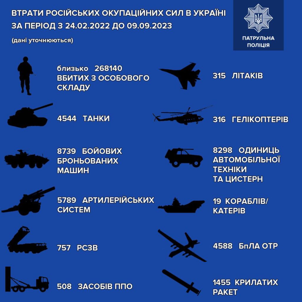 Втрати окупантів на 563 добу широкомасштабної збройної агресії російської федерації проти нашої країни. Ситуація станом на ранок 09 вересня