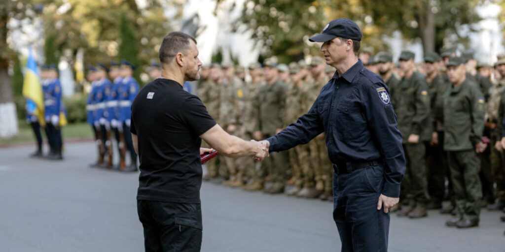 З нагоди Дня Незалежності України Глава МВС Ігор Клименко, нагородив орденом «За мужність» III ступеня, майора поліції, фахівця вибухотехнічної служби ГУНП в Рівненській області Олександа Ємця.
