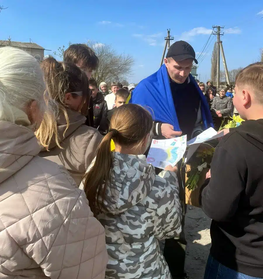 Після повернення додому його зустрічали односельці, рідні та близькі. Люди прийшли з прапорами, словами підтримки та вдячності. Зустріч була емоційною – зі сльозами радості та обіймами після тривалого очікування.