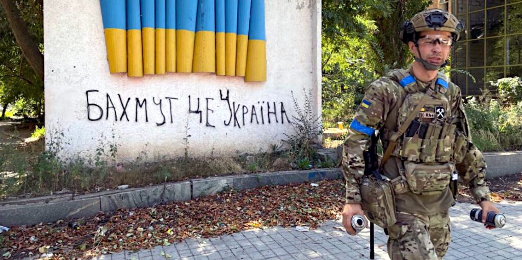 Донеччанин Віталій Овчаренко, який воює проти російських окупантів з 2014 року, розповів, що це він той “вандал”, який “забомбив стіну” в Бахмуті відомим написом “Бахмут — це Україна”.