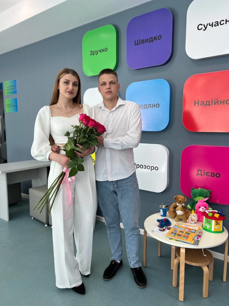 Дмитро та Стелла отримали у ЦНАПі консультацію щодо реєстрації шлюбу та одружилися. Вітаємо молодят, бажаємо миру та злагоди!