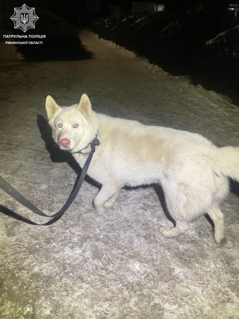 Поліцейські доставили чотирилапого на стаціонарний пост патрульної поліції у місті Сарни. Там собаку помістили у вольєр і нагодували.