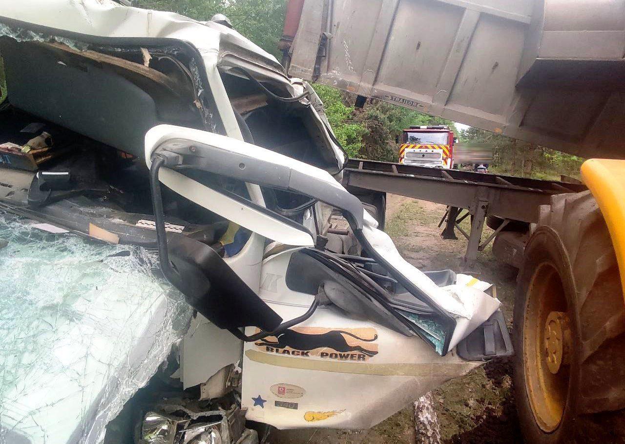 Водій загинув у Рівненській області під час розвантаження. Рятувальники надали допомогу по деблокуванню його тіла з понівеченої вантажівки.