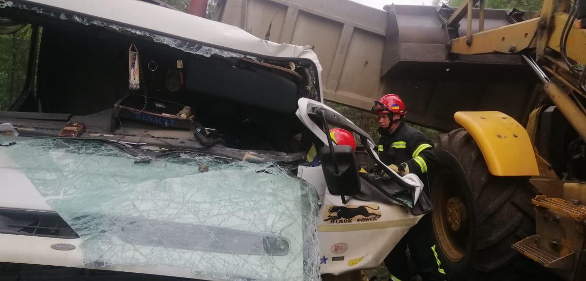 На спецлінію “101” надійшло повідомлення, що поблизу села Деражне Рівненського району під час розвантаження напівпричіп упав на кабіну вантажного авто Renault Premium, в якій перебував водій. На жаль водій загинув.