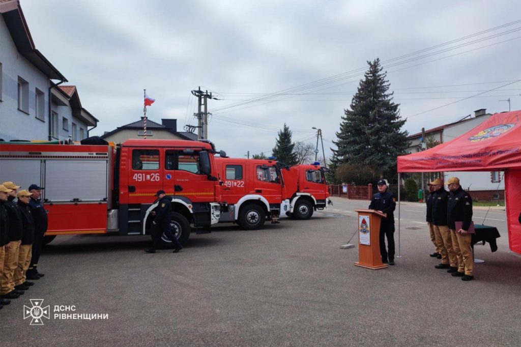 У місті Люблін вогнеборці Державної пожежної служби Польщі урочисто передали представникам Головного управління ДСНС у Рівненській області важкий пожежно-рятувальний автомобіль.