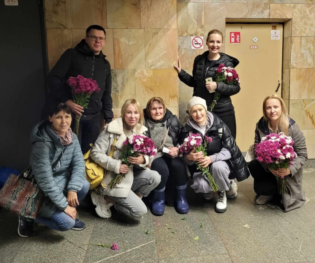 Волонтери привітали з ювілеєм Бабу Галю, яка продає квіти на метро Мінська. Кияни відгукнулися і допомогли з привітанням.