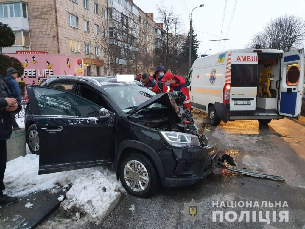 Поліцейські на місці події з’ясували, що 59-річний водій автомобіля «Cherry Tiggo», житель села Колоденка Рівненського району, із невстановлених поки причин, виїхав на смугу зустрічного руху, де допустив зіткнення із маршрутним транспортним засобом. Від удару легковик відкинуло на тротуар.
