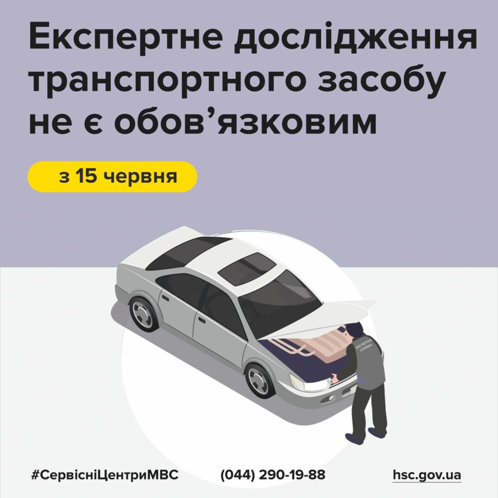 Дослідження транспортного засобу Експертною службою МВС є обов’язковим відтепер лише при першій реєстрації вживаного ввезеного з-за кордону транспортного засобу. Вартість такого дослідження залишається незмінною і становить орієнтовно 350 грн.