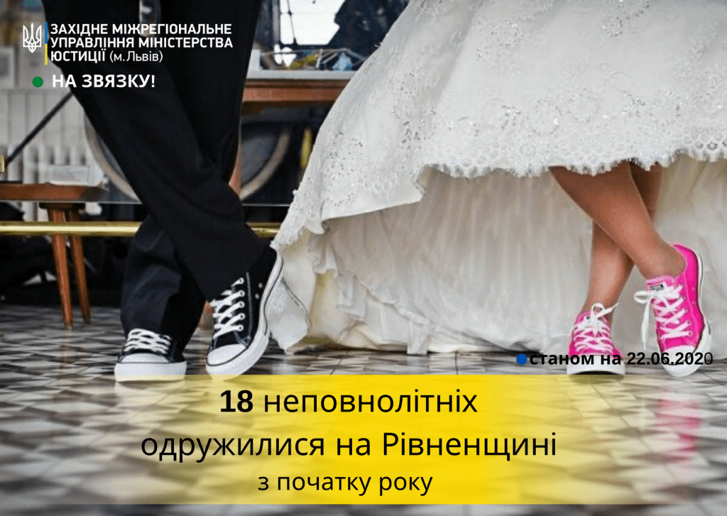 18 неповнолітніх пар зареєстрували свій шлюб на Рівненщині. Трапляються такі випадки все частіше, коли молоді люди приймають рішення одружитися до досягнення ними встановленого законодавством шлюбного віку. З початку 2020 року таких пар на Рівненщині 18.