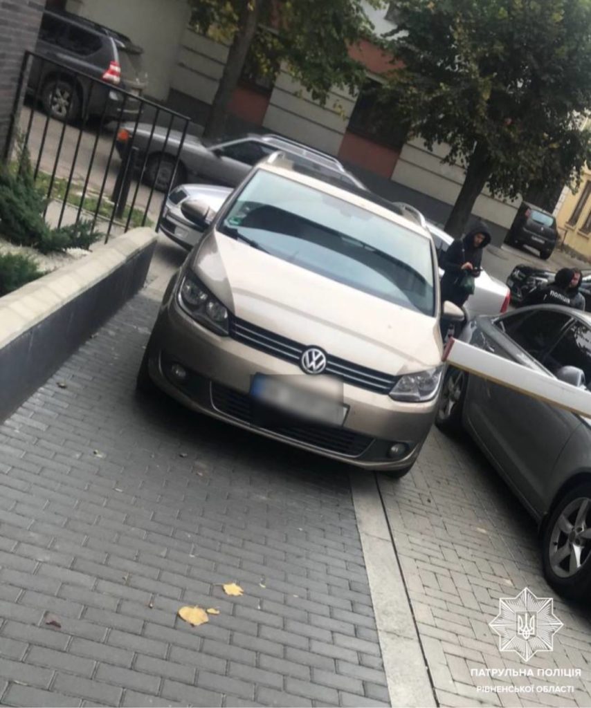 На місці події інспектори побачили, що не лише керманичка порушила ПДР, адже водій-заявник своє авто Volkswagen розмістив просто посеред тротуару, чим створив перешкоду пішоходам та іншим автівкам.