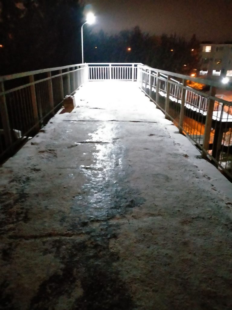 Це стосується і залізничного мосту. З першим снігом та зовсім невеличким морозом цей міст став такою собі перепоною для перехожих. А особливо сходи, вони досить слизькі. Піднятися або спуститися з цього мосту стало небезпечно. Більш того якщо послизнутися , то можна можна впасти на залізничну колію. А це може привести до трагедії.