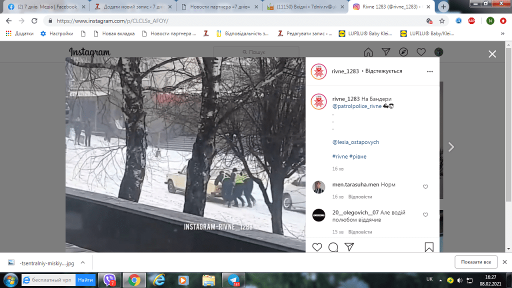 Так, в інстаграмі в групі Rivne_1283 розмістили відео на якому поліцейській штовхають автомобіль ВАЗ. Подія трапилась на перехресті вулиць Степана Бандери та кн. Ольги. Схоже на те, що автівка не змогла рушити на зелене світло світлофору і на допомогу прийшли поліцейські.